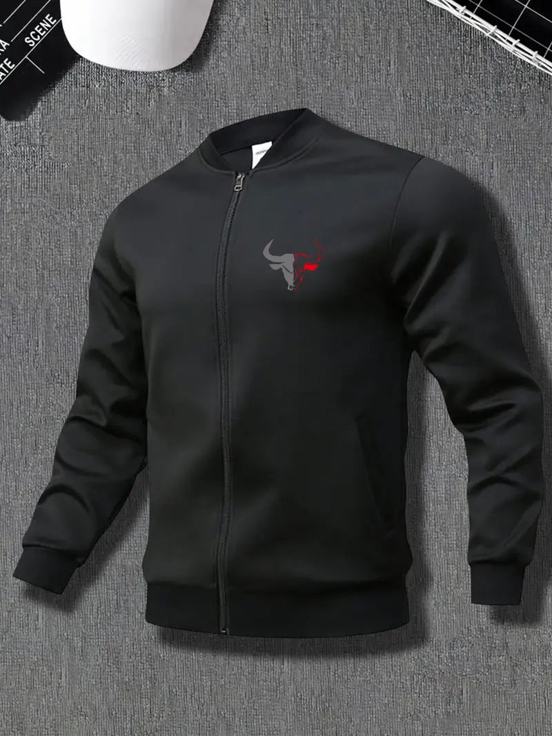 1pc Men'S Casual American Style Stand Collar Jacket - Geometric Bull Pattern